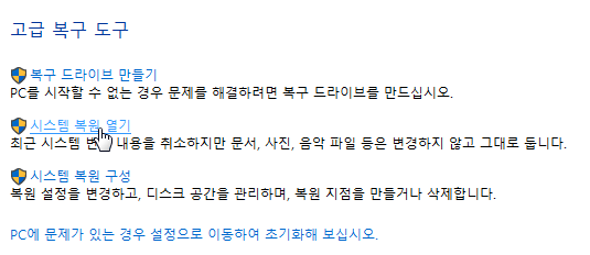 8. 시스템 복구 기능 사용