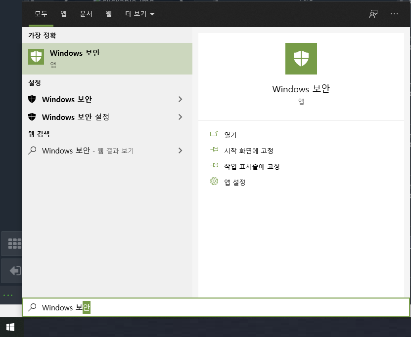 ❶ 윈도우 로고 키를 눌러 시작 메뉴를 열고 Windows 보안을 입력한 다음 결과에 나온 항목을 클릭하여 엽니다.