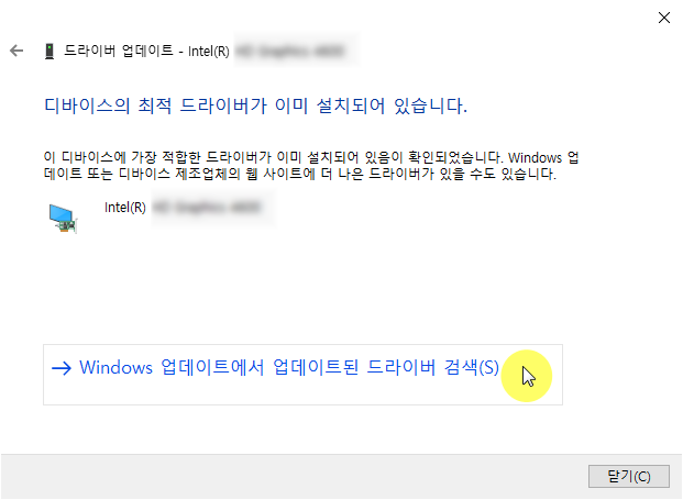 ❸ '이 디바이스에 가장 적합한 드라이버가 이미 설치되어 있습니다' 메시지가 표시되면 Windows 업데이트에서 업데이트된 드라이버 검색을 클릭합니다.